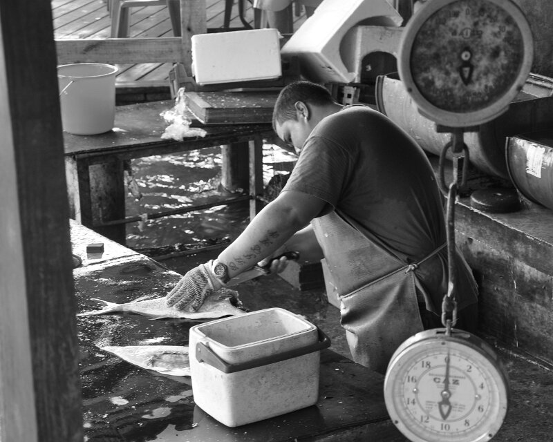 ABC Tours last stop -- Local bar : Preparing fresh fish
