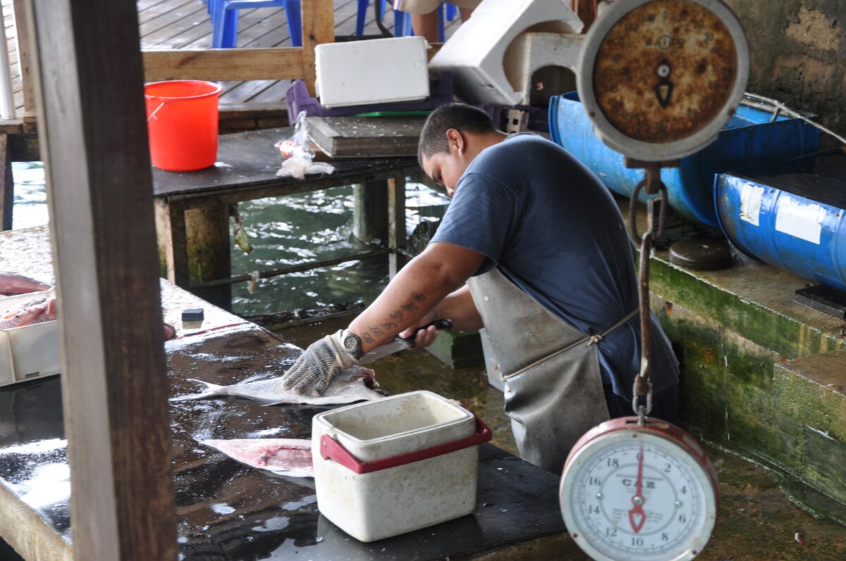 ABC Tours last stop -- Local bar : Preparing fresh fish